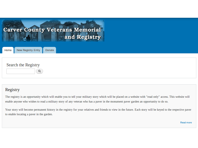 This website was created to not only provide a web presence for this memorial, but also to provide a place to share and view information about the veterans that have purchased pavers. These stories can be viewed while visiting the memorial and from anywhere. This site was setup through a custom Drupal install to provide the scalability of several thousand entries in the registry.